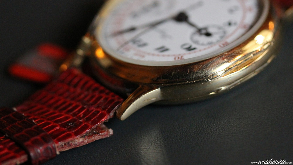 Finally, to close the topic, two watches which feature many common traits: Manual chronograph, enameled dial with red chrono indicator and gold case.
